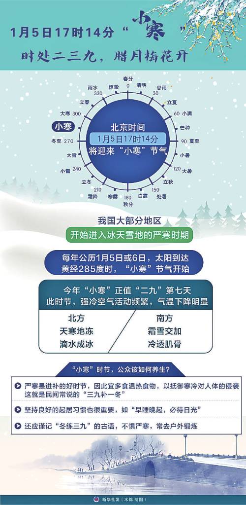 1月5日17時(shí)14分“小寒” 時(shí)處二三九,臘月梅花開(kāi)