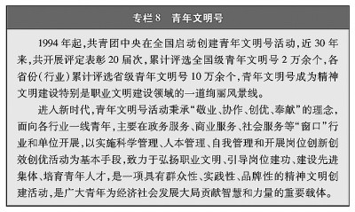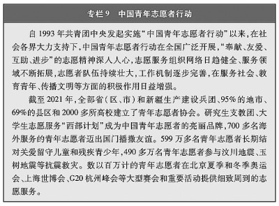 無(wú)論在城鎮(zhèn)還是鄉(xiāng)村、企業(yè)還是學(xué)校,青年都自覺(jué)把正確的道德認(rèn)知、自覺(jué)的道德養(yǎng)成、積極的道德實(shí)踐緊密結(jié)合起來(lái),帶頭倡導(dǎo)向上向善社會(huì)風(fēng)氣、塑造社會(huì)文明新風(fēng)尚。在城鄉(xiāng)社區(qū)建設(shè)中,越來(lái)越多的青年投身社區(qū)治理和服務(wù)體系建設(shè),主動(dòng)參加“社區(qū)青春行動(dòng)”,加強(qiáng)實(shí)踐鍛煉、提升服務(wù)貢獻(xiàn)。在各行各業(yè),青年秉承“敬業(yè)、協(xié)作、創(chuàng)優(yōu)、奉獻(xiàn)”的理念,踴躍創(chuàng)建“青年文明號(hào)”,大力弘揚(yáng)新時(shí)代職業(yè)文明,展現(xiàn)新時(shí)代職業(yè)形象。廣大青年運(yùn)動(dòng)員弘揚(yáng)體育道德風(fēng)尚,以良好的賽風(fēng)賽紀(jì)和文明禮儀,獲得競(jìng)技成績(jī)和精神文明雙豐收。1993年“中國(guó)青年志愿者行動(dòng)”啟動(dòng)以來(lái),志愿服務(wù)成為青年參與社會(huì)治理、履行社會(huì)責(zé)任的一面旗幟,成為青年在奉獻(xiàn)人民、服務(wù)社會(huì)中鍛煉成長(zhǎng)的重要途徑。截至2021年底,全國(guó)志愿服務(wù)信息系統(tǒng)中14歲至35歲的注冊(cè)志愿者已超過(guò)9000萬(wàn)人,他們活躍在社區(qū)建設(shè)、大型賽事、環(huán)境保護(hù)、扶貧開(kāi)發(fā)、衛(wèi)生健康、應(yīng)急救援、文化傳承等各個(gè)領(lǐng)域,弘揚(yáng)“奉獻(xiàn)、友愛(ài)、互助、進(jìn)步”的志愿精神,在全社會(huì)形成團(tuán)結(jié)互助、平等友愛(ài)、共同前進(jìn)的新風(fēng)尚。中國(guó)青年志愿者扶貧接力計(jì)劃研究生支教團(tuán)、大學(xué)生志愿服務(wù)“西部計(jì)劃”連續(xù)18年派遣41萬(wàn)余名研究生、大學(xué)畢業(yè)生,到中西部2100多個(gè)縣(市區(qū)旗)開(kāi)展扶貧支教、衛(wèi)生醫(yī)療等志愿服務(wù)。青年始終是大型賽會(huì)志愿服務(wù)的主體力量,給千家萬(wàn)戶乃至全世界留下深刻印象。