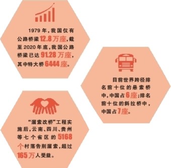 截至2020年年底,我國公路橋梁達91.28萬座,其中特大橋6444座,不論在長江、黃河等大江大河,還是泉州灣等海灣地區(qū),一座座施工難度大、技術(shù)含量高、在世界橋梁建設(shè)中具有代表性的橋梁成為閃亮的“中國名片”。