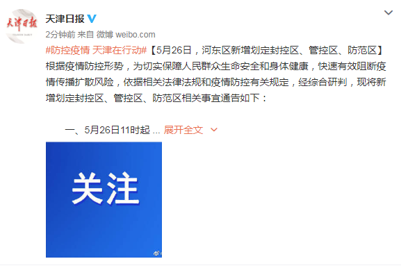 天津河?xùn)|區(qū)新增劃定封控區(qū)、管控區(qū)、防范區(qū)