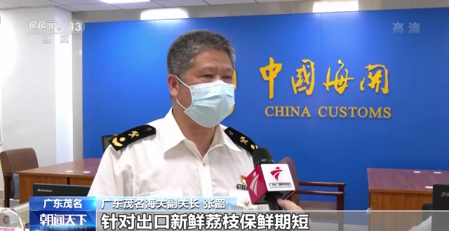 廣東茂名海關副關長 張韶:針對出口新鮮荔枝保鮮期短、通關時效性強的特點,采取農產品出口綠色通道“一對一”的服務措施,4月25日以來,我們茂名鮮荔枝出口1075噸,出口金額人民幣2662萬(元)。