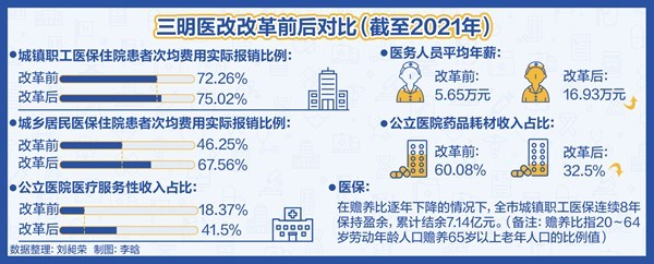 此外,通過實行醫(yī)保總額付費、結(jié)余留用激勵機(jī)制,緊密型縣域醫(yī)共體將更多工作轉(zhuǎn)向健康管理,試點地區(qū)參保居民住院率從2019年的24%下降至2020年的15%,醫(yī)保實際報銷比提高到61.2%,好于全國平均水平,群眾醫(yī)療費用負(fù)擔(dān)減輕。