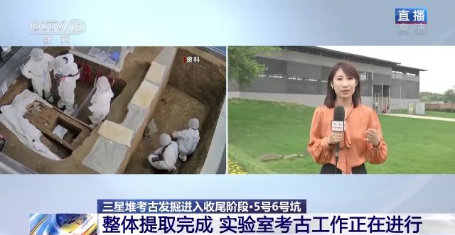總臺(tái)央視記者 任梅梅:我身后就是三星堆遺址考古發(fā)掘大棚,目前6個(gè)新發(fā)現(xiàn)的祭祀坑考古發(fā)掘工作總體已經(jīng)開始進(jìn)入收尾階段,其中3號(hào)坑和4號(hào)坑已經(jīng)完成現(xiàn)場的發(fā)掘工作,5號(hào)坑和6號(hào)坑整體提取進(jìn)入實(shí)驗(yàn)室發(fā)掘階段。