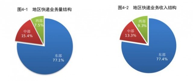 1-7月,東、中、西部地區(qū)快遞業(yè)務(wù)量比重分別為77.1%、15.4%和7.5%,業(yè)務(wù)收入比重分別為77.4%、13.3%和9.3%。與去年同期相比,東部地區(qū)快遞業(yè)務(wù)量比重下降1.5個(gè)百分點(diǎn),快遞業(yè)務(wù)收入比重下降1.1個(gè)百分點(diǎn);中部地區(qū)快遞業(yè)務(wù)量比重上升1.2個(gè)百分點(diǎn),快遞業(yè)務(wù)收入比重上升0.6個(gè)百分點(diǎn);西部地區(qū)快遞業(yè)務(wù)量比重上升0.3個(gè)百分點(diǎn),快遞業(yè)務(wù)收入比重上升0.5個(gè)百分點(diǎn)。