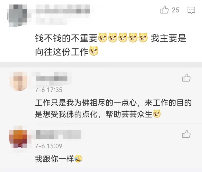 有不少網(wǎng)友在招聘啟事下留言:錢不錢的不重要,主要是向往這份工作;這不是我夢(mèng)中情工嗎……