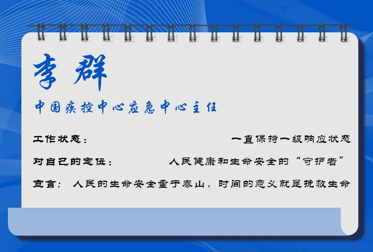 2019年12月31日一早,李群隨中國(guó)疾控中心工作組趕赴武漢,同時(shí)作為國(guó)家衛(wèi)生健康委專(zhuān)家組成員參加工作。他參加制定了《武漢不明原因的病毒性肺炎密切接觸者管理方案》和《應(yīng)急監(jiān)測(cè)方案》。他提出的對(duì)密接人員進(jìn)行14天醫(yī)學(xué)觀察,此后成為密接人員管理的通用做法。