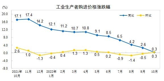 國家統(tǒng)計(jì)局:10月份工業(yè)生產(chǎn)者出廠價(jià)格同比下降1.3% 環(huán)比上漲0.2%