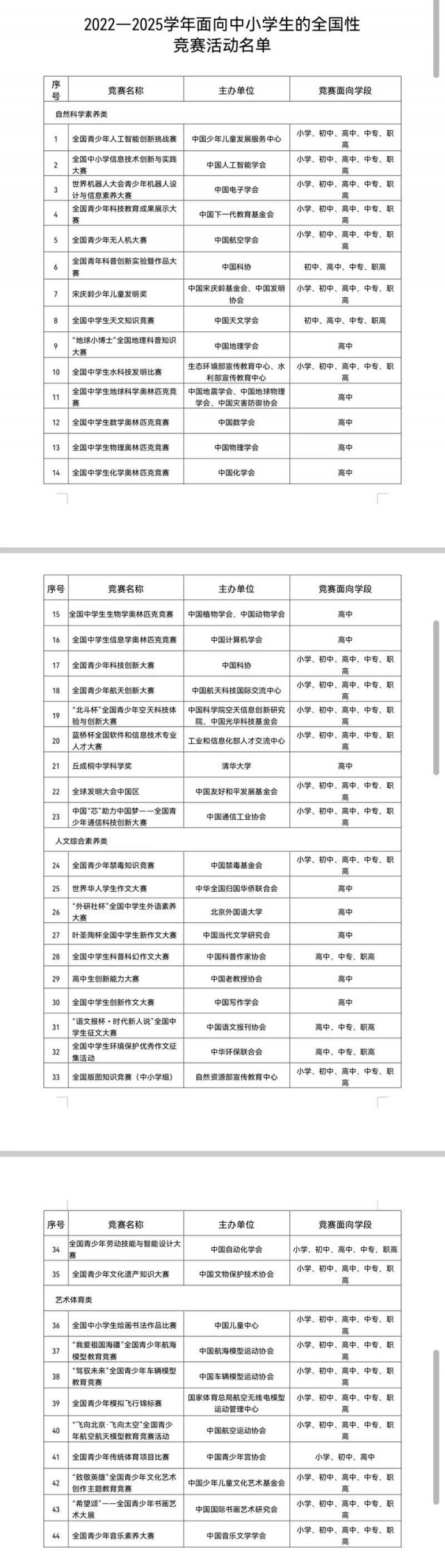 教育部公布44項(xiàng)中小學(xué)生全國性競賽活動(dòng)名單
