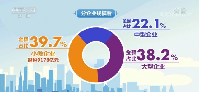 分企業(yè)規(guī)???,今年以來,已獲得留抵退稅的納稅人中,小微企業(yè)戶數(shù)占比93.1%,是受益主體,共享受退稅9178億元,金額占比39.7%。中型企業(yè)、大型企業(yè)的金額占比分別為22.1%和38.2%。
