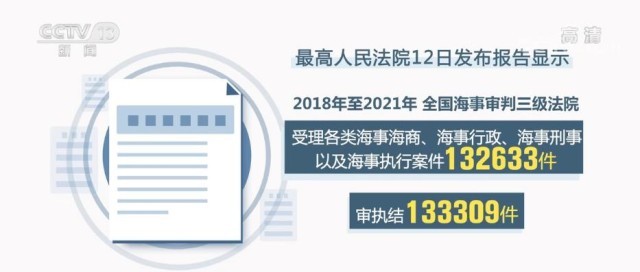 央視網(wǎng)消息:最高人民法院12月12日發(fā)布的《中國(guó)海事審判(2018—2021)》顯示,2018年至2021年,全國(guó)海事審判三級(jí)法院受理各類海事海商、海事行政、海事刑事以及海事執(zhí)行案件132633件、審執(zhí)結(jié)133309件。