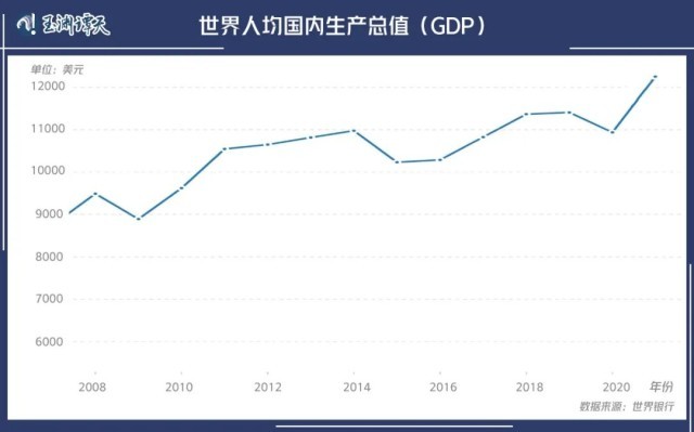 這期間,中國(guó)人均GDP從6000多美元上升至超過12000美元,世界排名提升了幾十名。