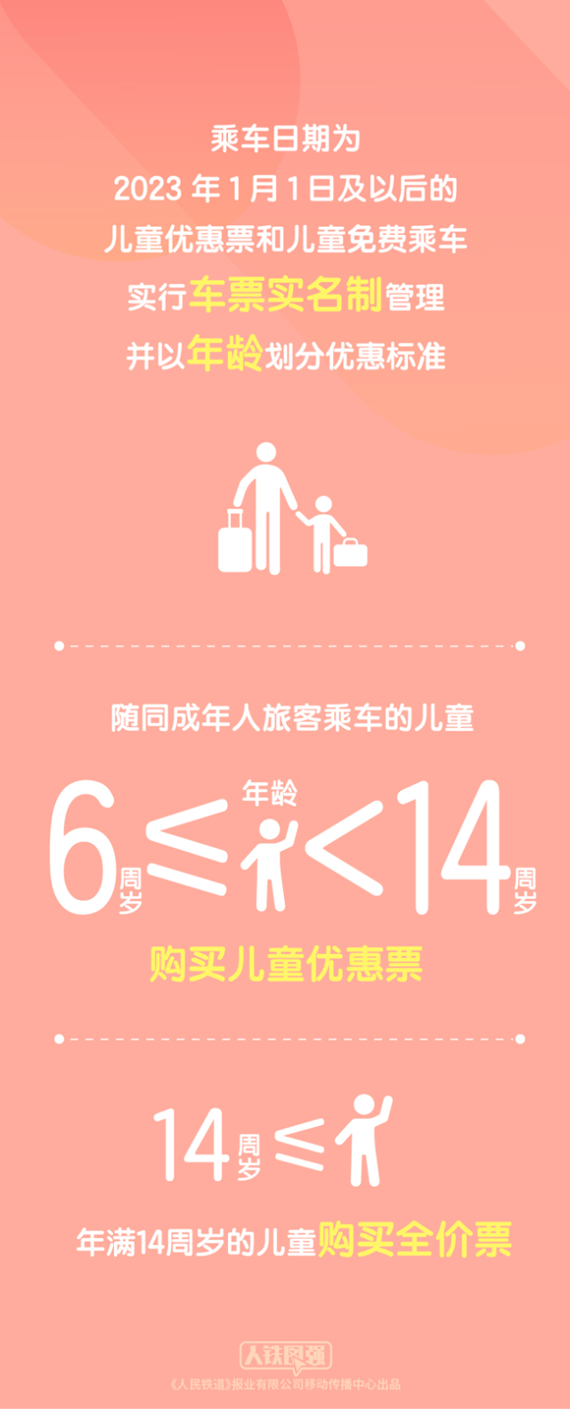 《客規(guī)》明確,乘車日期為2023年1月1日及以后的兒童優(yōu)惠票和兒童免費乘車實行車票實名制管理并以年齡劃分優(yōu)惠標(biāo)準(zhǔn)。