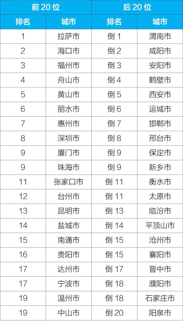 11月,168個(gè)重點(diǎn)城市中,拉薩、??诤透V菔械瘸鞘锌諝赓|(zhì)量相對(duì)較好(從第1名至并列第19名);渭南、咸陽和安陽市等城市空氣質(zhì)量相對(duì)較差(從倒數(shù)第1名至倒數(shù)第20名),見附表1。