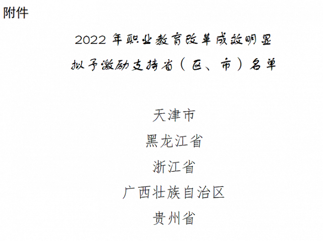 教育部公示2022年職業(yè)教育改革成效明顯擬予激勵支持省(區(qū)、市)名單