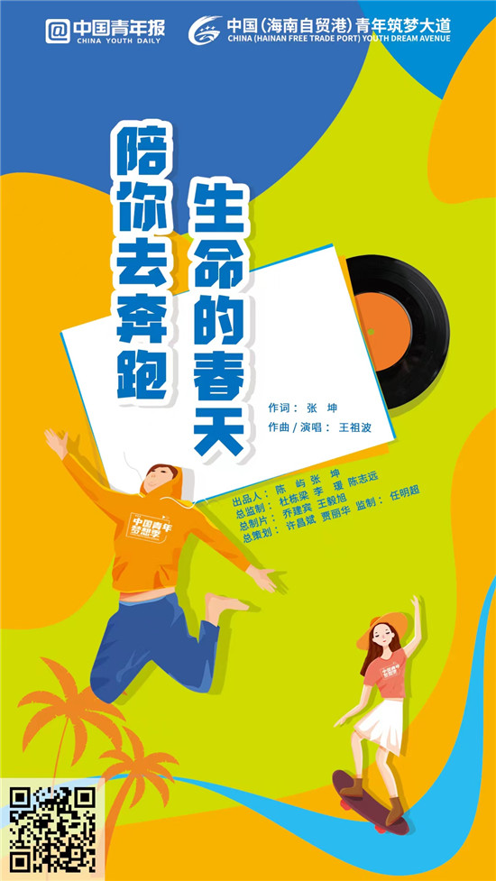 《生命的春天陪你去奔跑》就是這樣一首送給全國(guó)青年朋友的MV。這首MV由中國(guó)青年報(bào)社、共青團(tuán)海南省委聯(lián)合出品,團(tuán)海南省委辦公室主任王祖波作曲,一線優(yōu)秀青年代表演唱,平凡人用心創(chuàng)作唱給平凡人聽,希望為家國(guó)圓夢(mèng)創(chuàng)造不平凡的業(yè)績(jī),希望為“中國(guó)(海南自貿(mào)港)青年筑夢(mèng)大道”(以下簡(jiǎn)稱“筑夢(mèng)大道”)插上一起向未來(lái)的夢(mèng)想的翅膀。