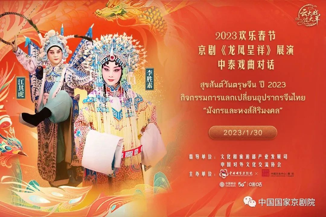 中新網(wǎng)北京1月31日電 據(jù)國家京劇院消息,1月30日,濃濃的年味還未散盡,國家京劇院一團團長、一級演員李勝素,一級演員江其虎等,攜經(jīng)典大戲《龍鳳呈祥》演播參加曼谷中國文化中心歡樂春節(jié)系列活動之一——“京劇《龍鳳呈祥》演播·中泰戲曲對話”活動。劇院藝術家與泰國觀眾“云端”相見,京劇《龍鳳呈祥》以線上演播的形式,與泰國優(yōu)泰劇展開對話,共慶喜慶祥和的傳統(tǒng)佳節(jié)。中國駐泰國大使館臨時代辦楊欣專門以視頻形式致辭,泰國文化部副常秘玉提佳女士出席活動并代表泰國文化部致辭,曼谷中國文化中心兼駐曼谷旅游辦主任闕小華、曼谷中國文化中心副主任趙歆等近200位各界人士現(xiàn)場參與了活動。