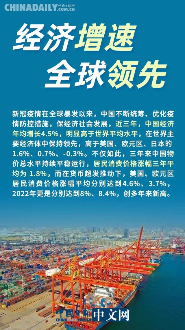 作為全球第二大經(jīng)濟(jì)體的中國,自新冠疫情暴發(fā)以來,不斷統(tǒng)籌、優(yōu)化疫情防控措施,全力保經(jīng)濟(jì)社會發(fā)展。三年來,中國經(jīng)濟(jì)年均增長4.5%,明顯高于世界平均水平,遠(yuǎn)高于美國、歐元區(qū)、日本等。2022年,中國經(jīng)濟(jì)總量再上新臺階。