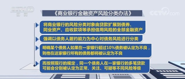 央視網(wǎng)消息:銀保監(jiān)會、中國人民銀行制定《商業(yè)銀行金融資產(chǎn)風(fēng)險分類辦法》,于2月11日正式對外發(fā)布。推動商業(yè)銀行加強(qiáng)信用風(fēng)險管理、提升服務(wù)實體經(jīng)濟(jì)水平。