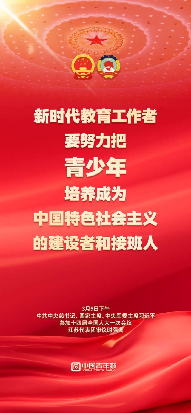 3月5日下午,習近平總書記在參加江蘇代表團審議時指出,新時代教育工作者要努力把青少年培養(yǎng)成為中國特色社會主義的建設者和接班人;要真正把青少年培養(yǎng)成為擁有“四個自信”的孩子。青少年是國家的未來,讓我們共同奮斗,為孩子們撐起成長的藍天!