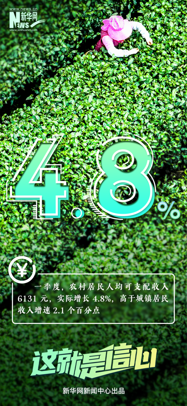 今年一季度,農(nóng)村居民人均可支配收入6131元,實(shí)際增長(zhǎng)4.8%;一季度全國(guó)城鎮(zhèn)新增就業(yè)297萬(wàn)人,同比增加4%;一季度豬肉產(chǎn)量同比增長(zhǎng)1.9%,畜禽和水產(chǎn)品全面增產(chǎn),蔬菜和水果供應(yīng)充足......剛剛過(guò)去的一季度,多項(xiàng)民生紅利集中釋放,跟隨這組數(shù)據(jù)一起感知。