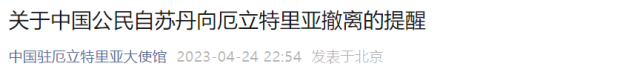 “目前,外交部已派出工作組赴前方開(kāi)展工作,第一批人員已安全撤至蘇丹鄰國(guó)。”毛寧說(shuō)。