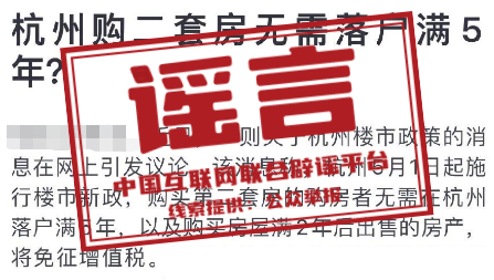 真相:近日,一則“杭州5月1日起施行樓市新政,購買第二套房的購房者無需落戶滿5年”的消息在網(wǎng)上流傳,引發(fā)關(guān)注。杭州市住房保障和房產(chǎn)管理局表示,這是一則假消息,杭州樓市因區(qū)施策,除臨安區(qū)不限購?fù)猓渌?個區(qū)均為限購區(qū)。(來源:經(jīng)濟日報)