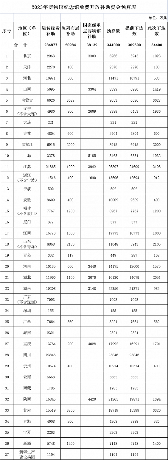 央視網(wǎng)消息:據(jù)財(cái)政部網(wǎng)站消息,根據(jù)《關(guān)于全國博物館、紀(jì)念館免費(fèi)開放的通知》(中宣發(fā)〔2008〕2號(hào))精神,財(cái)政部下達(dá)2023年博物館紀(jì)念館免費(fèi)開放補(bǔ)助資金(項(xiàng)目代碼:10000013Z135050000044,2023年政府收支分類科目:1100208結(jié)算補(bǔ)助收入)。數(shù)據(jù)顯示,全國預(yù)算344000萬元,提前下達(dá)309600萬元,此次下達(dá)34400萬元。