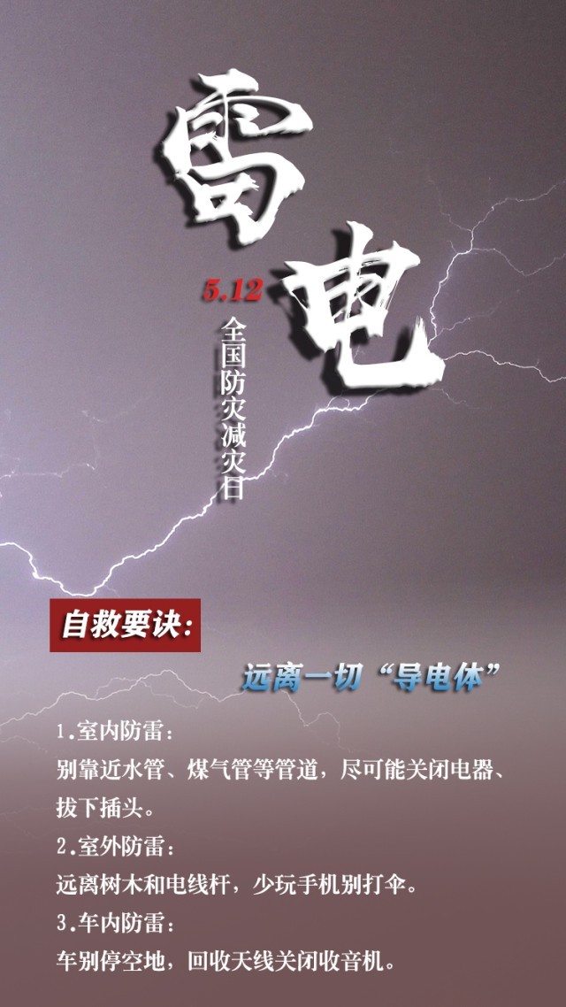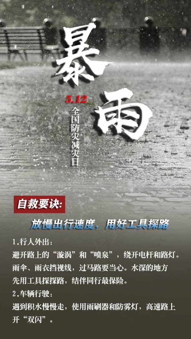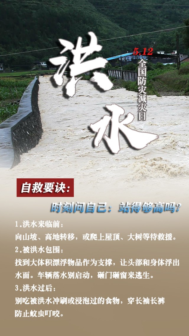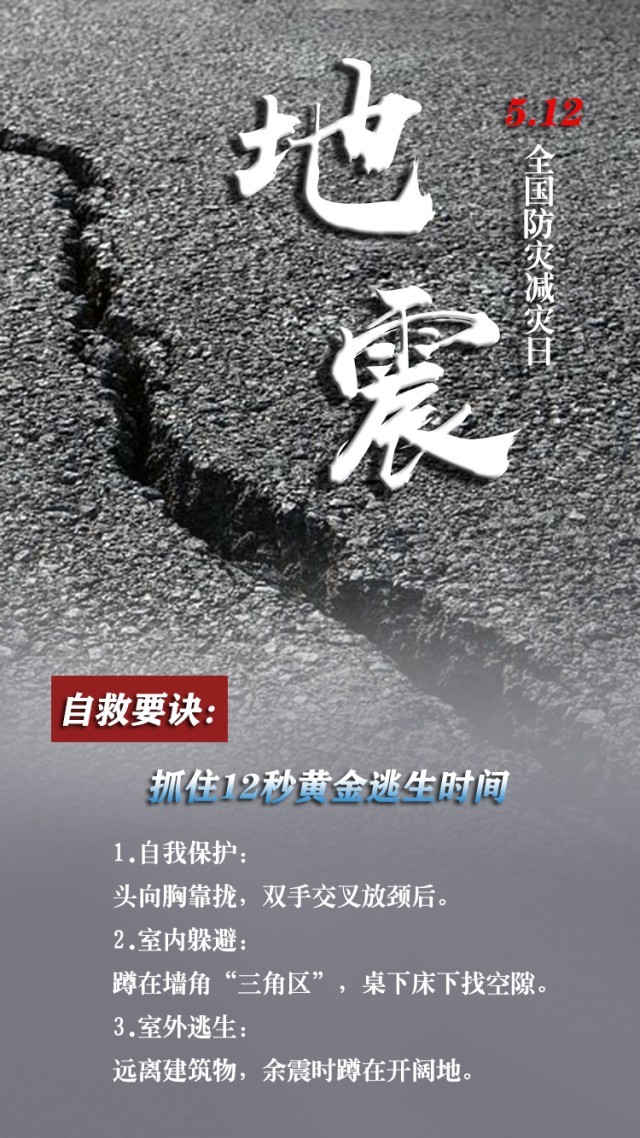 今天是第15個(gè)全國(guó)防災(zāi)減災(zāi)日。自然災(zāi)害隨時(shí)可能發(fā)生,及時(shí)自救才更有生存希望。地震來(lái)時(shí),如何抓住12秒黃金逃生時(shí)間?發(fā)生火災(zāi)時(shí),如何躲避火場(chǎng)濃煙?暴雨天如何安全出行?沙塵天氣如何做好防護(hù)……這份實(shí)用避險(xiǎn)口訣簡(jiǎn)單好記,請(qǐng)速速收藏。