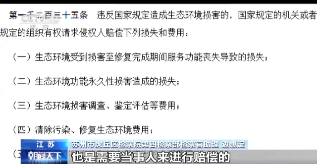 蘇州市虎丘區(qū)檢察院第四檢察部檢察官助理 邊惠淀:因為森林具有涵養(yǎng)水源、保持水土、固碳釋氧等多方面的生態(tài)功能,我們委托上海環(huán)境科學(xué)研究院的專家對這部分的生態(tài)損失進行了鑒定,這部分的損失總共是14萬余元。
