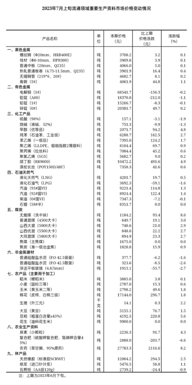 國家統(tǒng)計(jì)局:7月上旬流通領(lǐng)域重要生產(chǎn)資料市場35種產(chǎn)品價(jià)格上漲