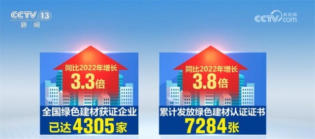 目前,全國綠色建材獲證企業(yè)已達(dá)到4305家,累計(jì)發(fā)放綠色建材認(rèn)證證書7284張,同比2022年分別增長3.3和3.8倍。