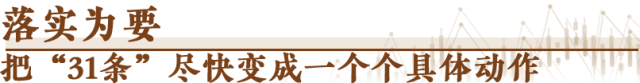 一分部署,九分落實。“31條”的最后三條,就是關(guān)于組織實施的要求。圍繞“31條”,“1+N”配套措施里的“N”,即將陸續(xù)公布,令人期待。