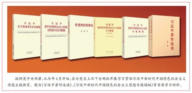 在全黨深入開展學(xué)習(xí)貫徹習(xí)近平新時代中國特色社會主義思想主題教育,是深入推進(jìn)新時代黨的建設(shè)新的偉大工程的重大部署。習(xí)近平新時代中國特色社會主義思想直面新時代管黨治黨新形勢新任務(wù),給出了自我革命這一跳出治亂興衰歷史周期率的第二個答案,為全黨時刻保持清醒和堅定、解決大黨獨(dú)有難題指明了行動方向、提供了根本遵循。要堅持不懈用習(xí)近平新時代中國特色社會主義思想凝心鑄魂,教育引導(dǎo)各級黨組織和廣大黨員干部突出問題導(dǎo)向,查不足、找差距、明方向,接受政治體檢,打掃政治灰塵,糾正行為偏差,解決突出問題,不斷增強(qiáng)黨的自我凈化、自我完善、自我革新、自我提高能力,使我們黨始終充滿蓬勃生機(jī)和旺盛活力,始終成為中國特色社會主義事業(yè)的堅強(qiáng)領(lǐng)導(dǎo)核心。