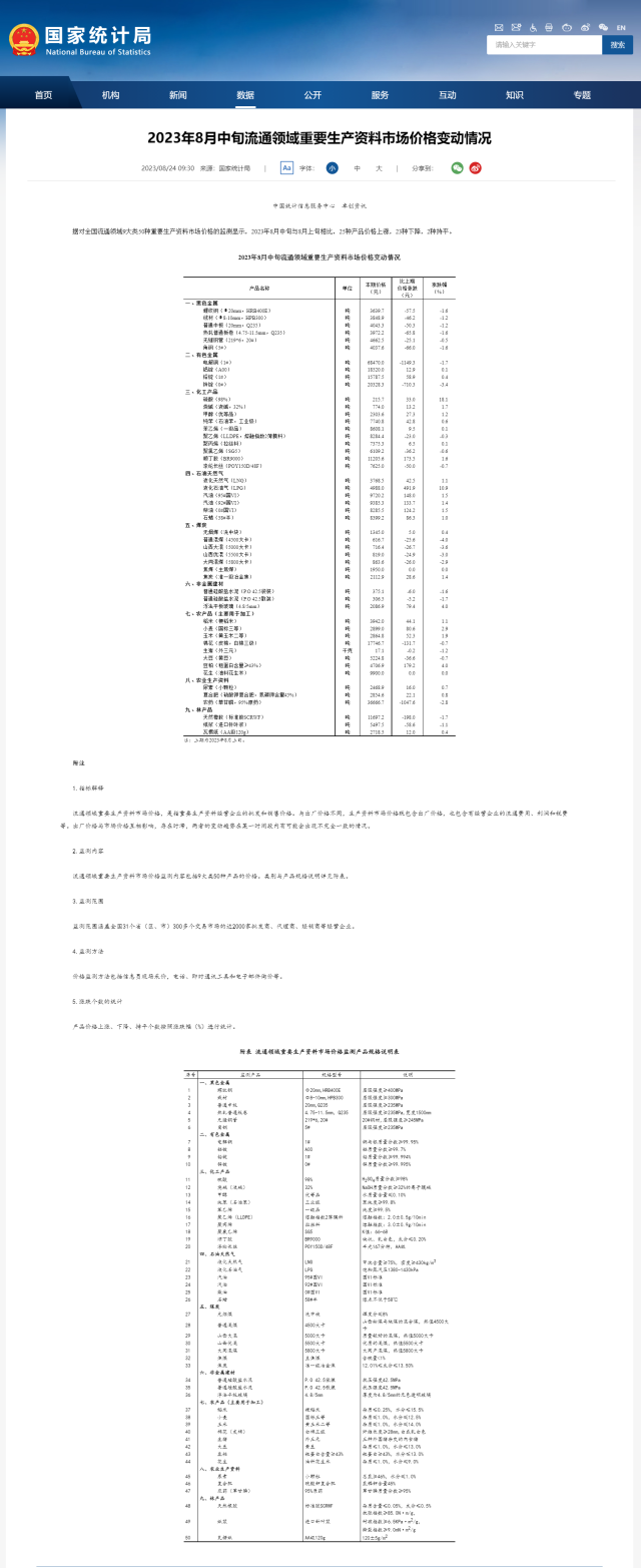 央視網(wǎng)消息:國家統(tǒng)計局數(shù)據(jù)顯示,2023年8月中旬與8月上旬相比,25種產(chǎn)品價格上漲,23種下降,2種持平。其中,生豬(外三元)價格報17.1元/千克,環(huán)比下降1.2%。