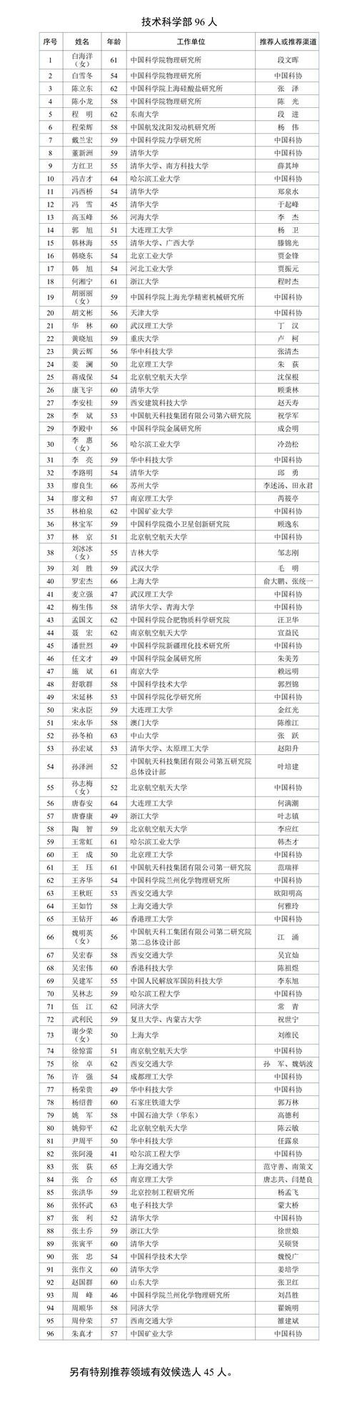 583人!2023年中國科學(xué)院院士增選有效候選人名單公布