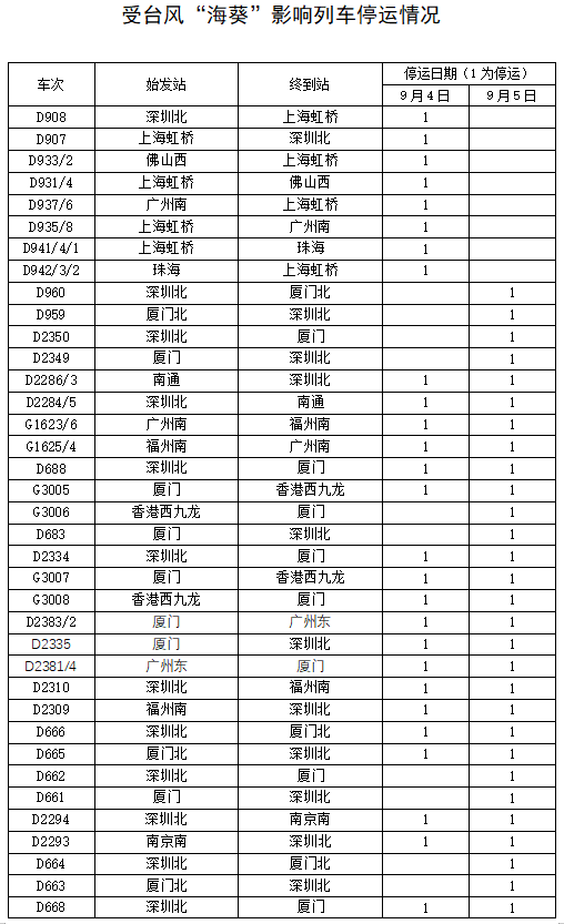 受臺風“??庇绊?鐵路部門停運途經(jīng)杭深鐵路部分旅客列車