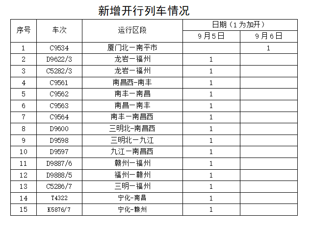 據(jù)中央氣象臺(tái)消息,今年第11號(hào)臺(tái)風(fēng)“??庇诮裉欤?月5日)早晨5點(diǎn)20分前后在福建省東山縣沿海登陸,福建東部部分地區(qū)將有大暴雨,并伴有短時(shí)強(qiáng)降水,局地有雷暴大風(fēng)等強(qiáng)對(duì)流天氣。為防范臺(tái)風(fēng)影響,保障鐵路運(yùn)輸安全,中國(guó)鐵路南昌局集團(tuán)有限公司繼續(xù)調(diào)整部分旅客列車(chē)運(yùn)行方案,停運(yùn)管內(nèi)途經(jīng)杭深線福州南至詔安,龍漳線龍巖至漳州,昌福線三明北至福州等區(qū)段旅客列車(chē)。同時(shí),加開(kāi)15趟旅客列車(chē),方便旅客出行。