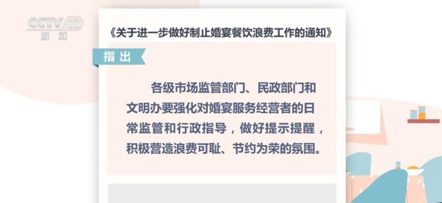 央視網(wǎng)消息:市場(chǎng)監(jiān)管總局、民政部和中央文明辦近日聯(lián)合印發(fā)《通知》,通過強(qiáng)化部門聯(lián)動(dòng),推進(jìn)制止婚宴餐飲浪費(fèi)工作。