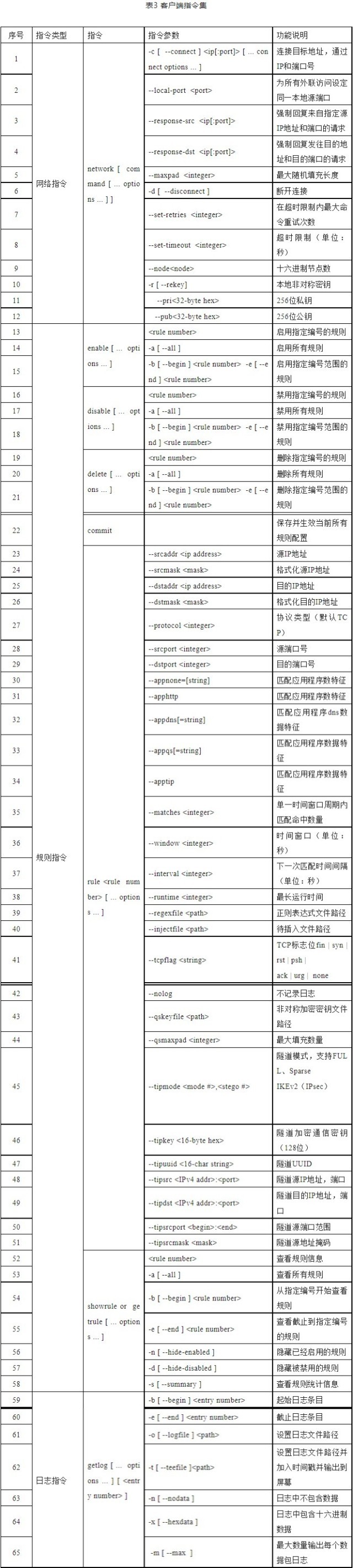 經(jīng)分析,客戶端支持的主要指令及其功能說明如表3所示。