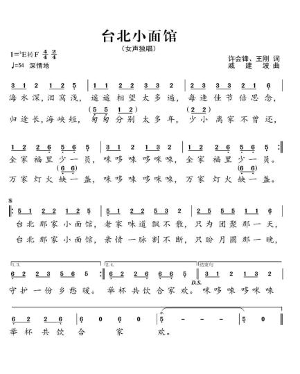 歌曲《臺(tái)北小面館》圍繞中華民族唇齒相依、骨肉相連一家親,海峽兩岸一脈相承、血濃于水一家人的熾熱情感為主線,歌詞通過“海水深,淚窩淺”“歸途長(zhǎng),海峽短”,抒發(fā)了同胞隔海相望的濃濃思念之情,以及“每逢佳節(jié)倍思念”“少小離家不曾還”,傾訴著親人渴望團(tuán)圓的深深相思。