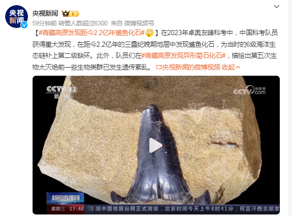 在2023年卓奧友峰科考中,中國科考隊(duì)員獲得重大發(fā)現(xiàn),在距今2.2億年的三疊紀(jì)晚期地層中發(fā)現(xiàn)鯊魚化石,為當(dāng)時(shí)的6級海洋生態(tài)鏈補(bǔ)上第二級缺環(huán)。此外,隊(duì)員們在#青藏高原發(fā)現(xiàn)異形菊石化石#,描繪出第五次生物大滅絕前一些生物類群已發(fā)生遺傳紊亂。