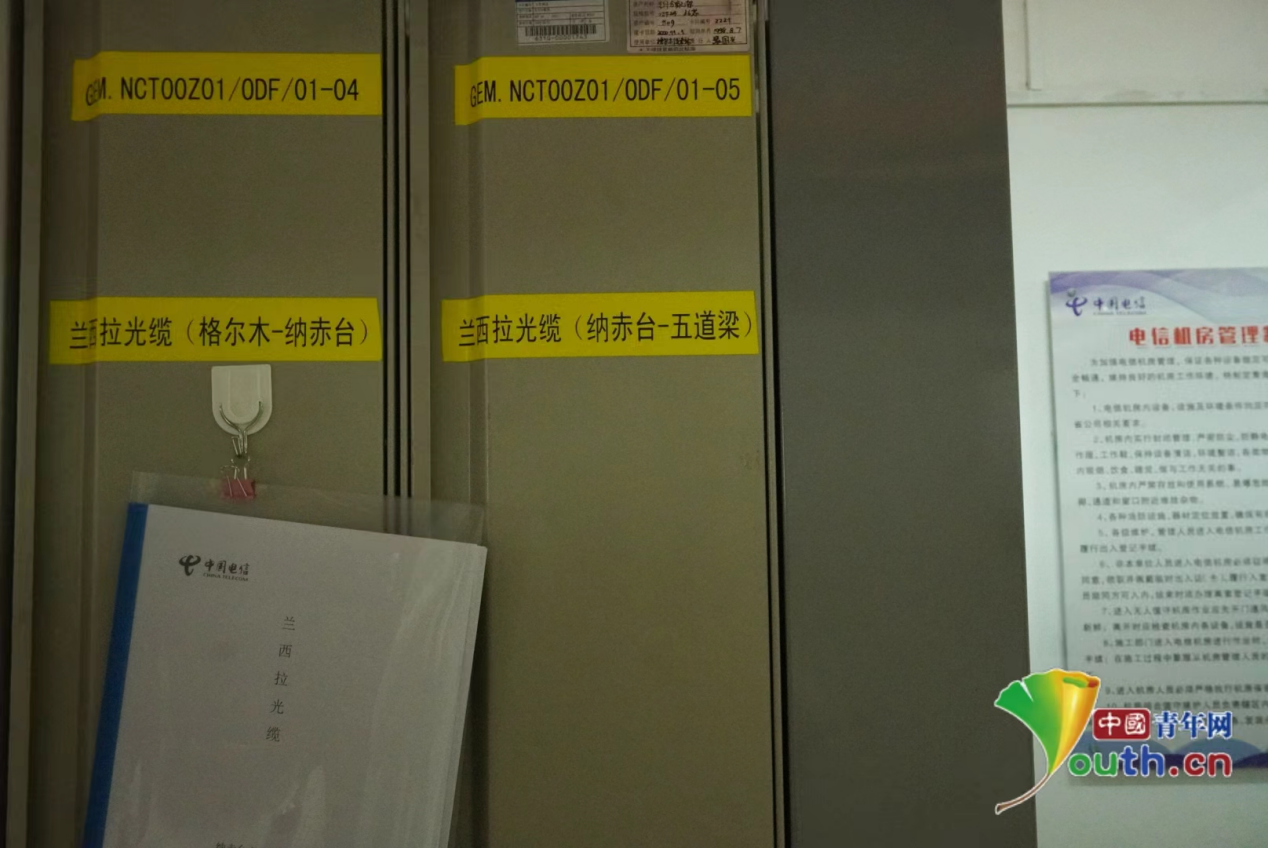 納赤臺(tái)機(jī)房蘭西拉光纜機(jī)柜。 中國青年網(wǎng)記者 曹迪攝