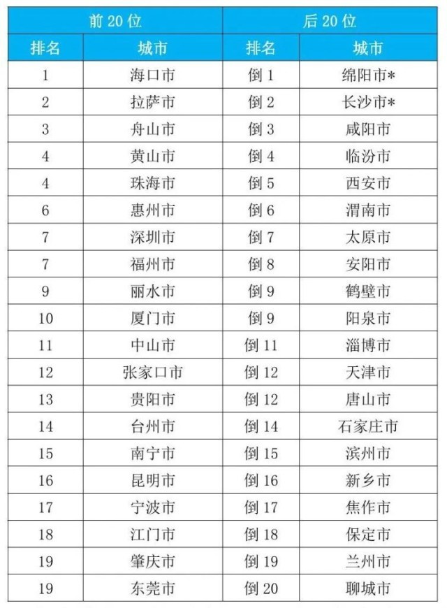 2023年1—9月168個重點城市空氣質量排名前20位和后20位城市名單。(圖片來源:生態(tài)環(huán)境部)
