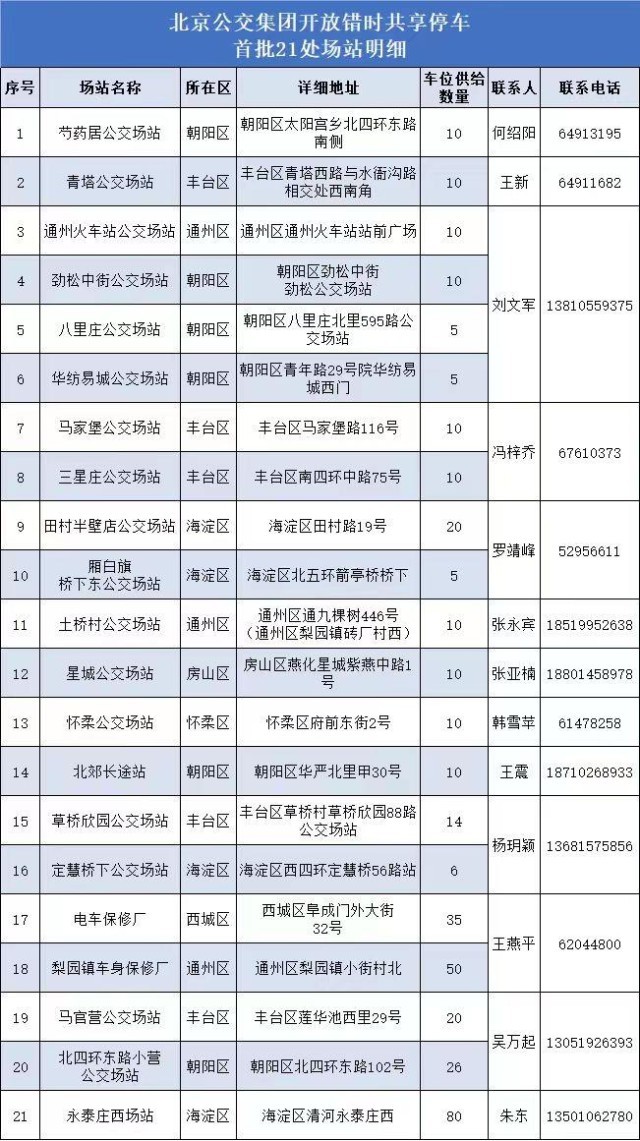 北京公交集團提醒,首批21處場站周邊居民如有停車需求,可與相關(guān)場站管理單位取得聯(lián)系,進一步了解錯時共享停車的服務(wù)內(nèi)容。