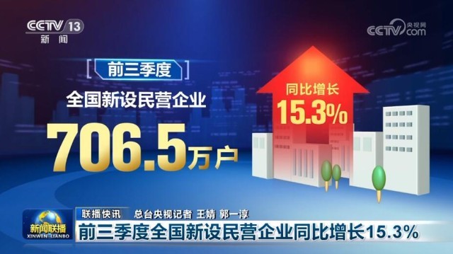 另外,市場監(jiān)管總局今天公布數(shù)據(jù)顯示,前三季度,全國新設民營企業(yè)706.5萬戶,同比增長15.3%。截至今年9月底,全國登記在冊民營企業(yè)數(shù)量超過5200萬戶,民營企業(yè)在企業(yè)總量中的占比達到92.3%。
