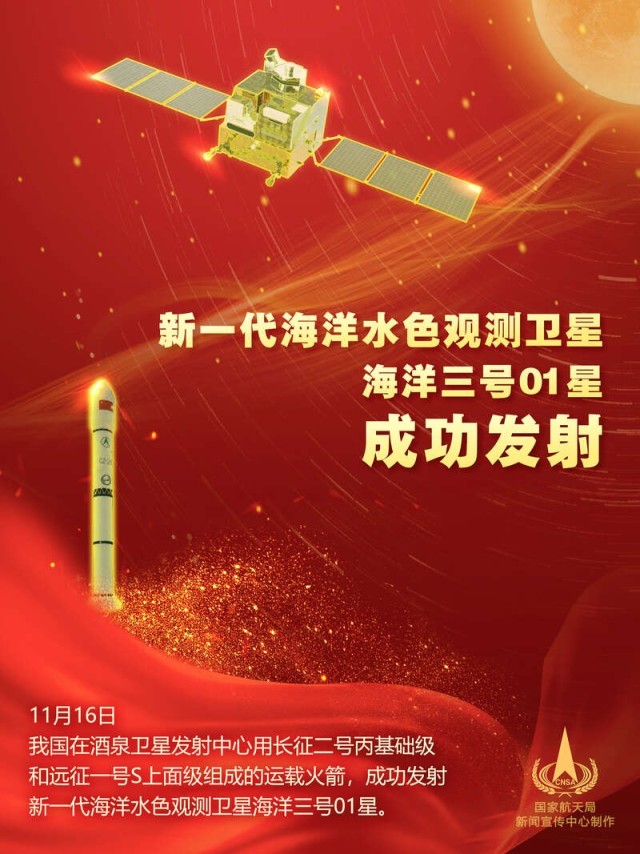 中國(guó)青年報(bào)客戶端北京11月16日電(張未 王豪 李儀 中青報(bào)·中青網(wǎng)記者 邱晨輝)北京時(shí)間11月16日11時(shí)55分,我國(guó)在酒泉衛(wèi)星發(fā)射中心用長(zhǎng)征二號(hào)丙基礎(chǔ)級(jí)和遠(yuǎn)征一號(hào)S上面級(jí)組成的運(yùn)載火箭,成功發(fā)射新一代海洋水色觀測(cè)衛(wèi)星海洋三號(hào)01星。該衛(wèi)星指標(biāo)達(dá)到國(guó)際水色遙感衛(wèi)星先進(jìn)水平,可滿足我國(guó)海洋環(huán)境監(jiān)測(cè)的主體業(yè)務(wù)需求,并能夠服務(wù)于生態(tài)文明建設(shè)、智慧海洋工程建設(shè)、“一帶一路”倡議等國(guó)家重大戰(zhàn)略需求。