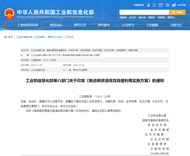 央視網(wǎng)消息:工信部等八部門印發(fā)《推進磷資源高效高值利用實施方案》,其中提出,堅持分類施策,推進產(chǎn)品結構調(diào)整。嚴格控制磷銨、黃磷等行業(yè)新增產(chǎn)能。促進磷肥保供穩(wěn)價,優(yōu)先保障磷肥企業(yè)磷礦需求,引導企業(yè)科學排產(chǎn)、維持合理庫存、穩(wěn)定市場預期,支持骨干企業(yè)做優(yōu)做強,積極發(fā)展新型高效磷肥品種。擴大濕法凈化磷酸及黃磷精深加工生產(chǎn)能力,延伸發(fā)展功能性磷酸鹽等高附加值磷化學品,推動產(chǎn)業(yè)發(fā)展方式由規(guī)模擴張向精細化、專用化、系列化的服務型制造轉變。