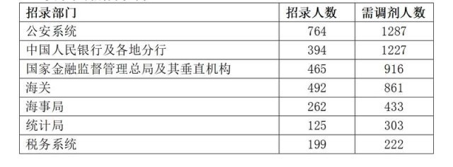 根據2024國考調劑職位表中的信息,調劑需求最多的是公安系統(tǒng)(含鐵路公安),需求總人數達到1287人,位居首位,中國人民銀行及各地分行緊隨其后,需要調劑人數僅比位列首位的公安系統(tǒng)少60人。國家金融監(jiān)督管理總局、證監(jiān)會等部門還有專業(yè)科目筆試,專業(yè)科目筆試成績必須達到45分才能參加調劑。