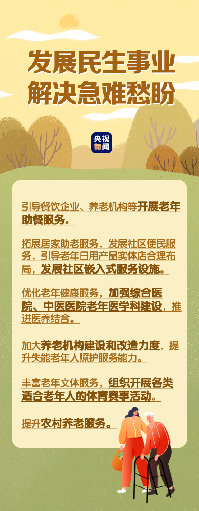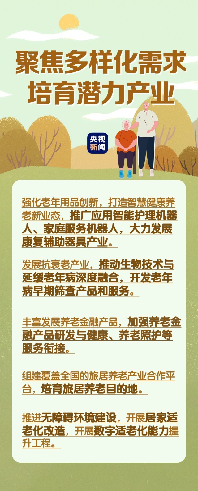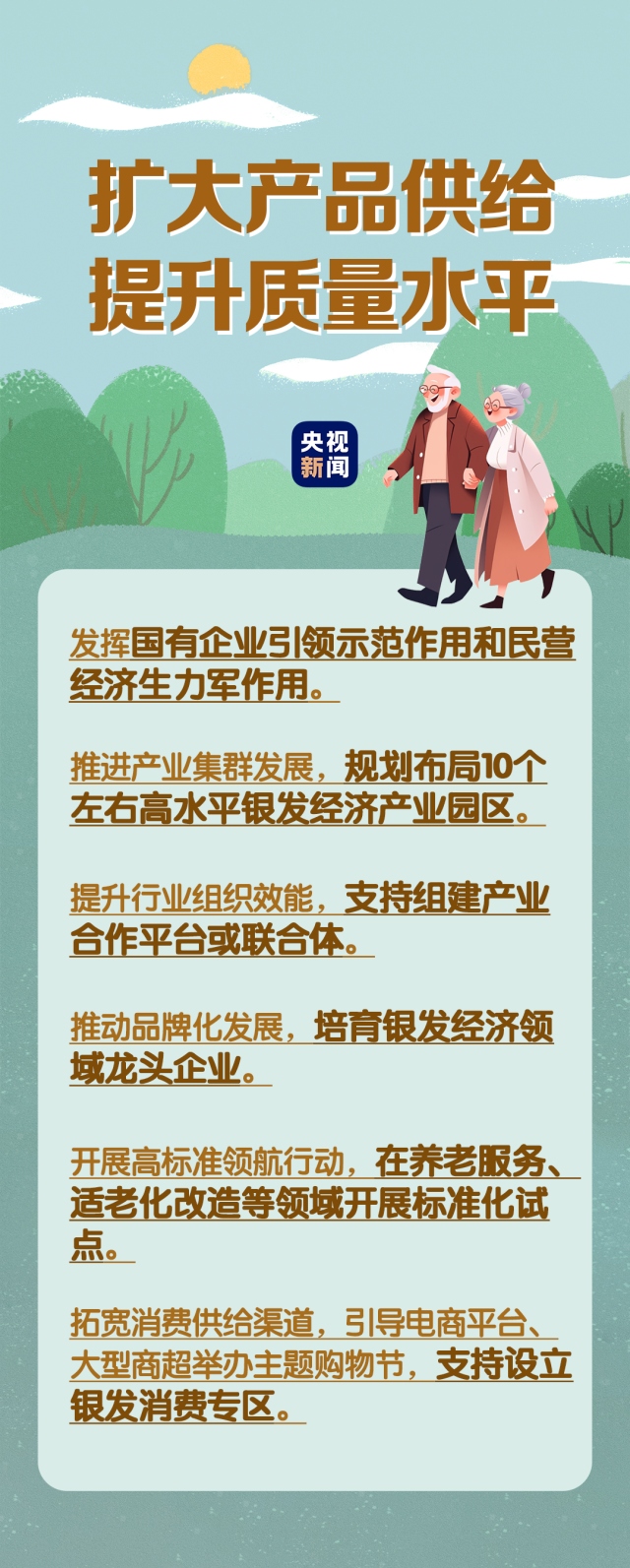 在民生事業(yè)方面,國家將擴(kuò)大和發(fā)展七方面的服務(wù),包括養(yǎng)老助餐、居家助老、社區(qū)便民、老年健康、養(yǎng)老照護(hù)、老年文體、農(nóng)村養(yǎng)老等方面的服務(wù)。國務(wù)院辦公廳印發(fā)《關(guān)于發(fā)展銀發(fā)經(jīng)濟(jì)增進(jìn)老年人福祉的意見》中提出了4個(gè)方面舉措,小編根據(jù)文件內(nèi)容進(jìn)行了簡要梳理,一圖了解“銀發(fā)經(jīng)濟(jì)”核心要點(diǎn)。↓↓↓