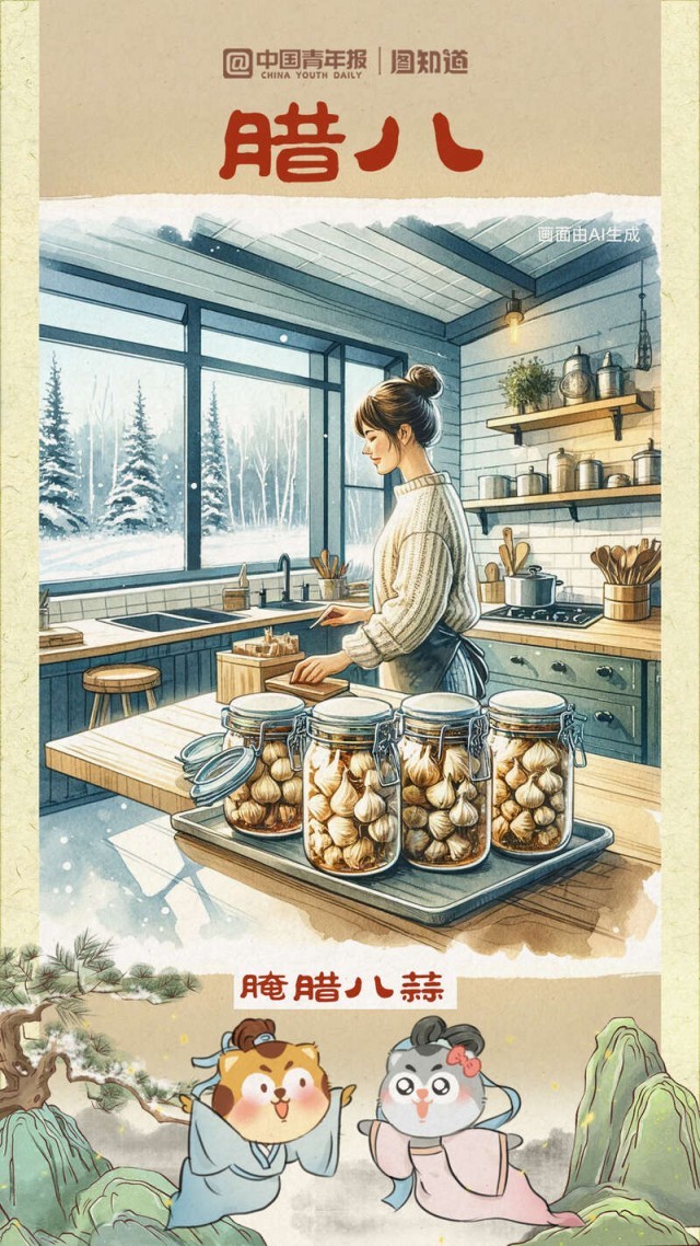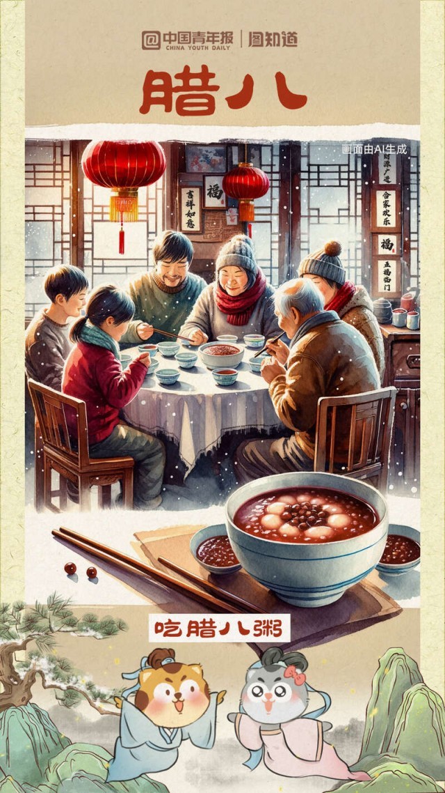 又是一年臘八時,道一聲萬事“粥”全?!坝煤?、松子、乳蕈、柿、栗之類為粥,謂之‘臘八粥’。”這是南宋周密筆下的臘八粥。你的“臘八”餐桌想擺上哪些地方的美食?①湖南湖北的熏臘肉②北方地區(qū)的臘八蒜、臘八醋③陜西關中地區(qū)臘八面……過了臘八就是年,幾幅臘八美食與你一起迎接小年。